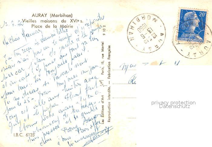 13581888 Auray Vieilles maisons du XVIe siècle Place de la Mairie postalisch gelaufen Erhaltung siehe scans [FriedD77] carte postale Frie Katcode 11170056156007