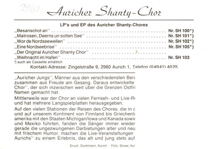 73883576 Aurich Ostfriesland Auricher Shanty Chor postalisch nicht gelaufen Werbekarte (keine Postkarte) Erhaltung siehe scans [WerneD78] KatCode: 11110003452001
