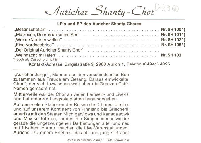 73883578 Aurich Ostfriesland Auricher Shanty Chor postalisch nicht gelaufen Werbekarte (keine Postkarte) Erhaltung siehe scans [WerneD78] KatCode: 11110003452001