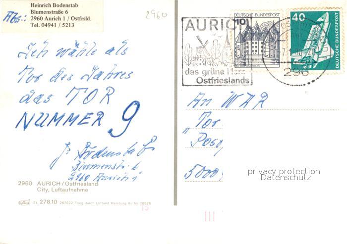 73704897 alte Postkarte Aurich Ostfriesland Fliegeraufnahme postalisch gelaufen Erhaltung siehe scans [WerneD78] KatCode: 11110003452001