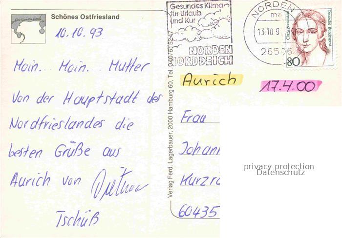 74153519 alte Postkarte Aurich Ostfriesland Norderstrasse postalisch gelaufen Erhaltung siehe scans [FriedD77] KatCode: 11110003452001