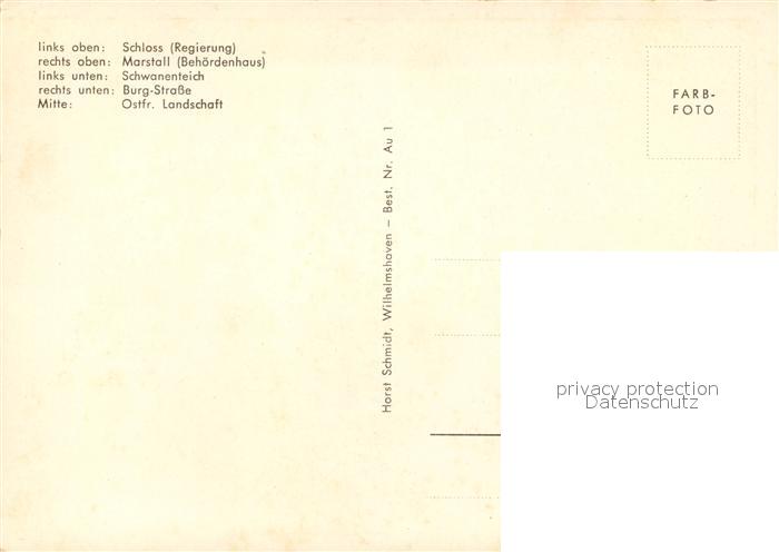 73310264 Aurich Ostfriesland Schloss Regierung Marstall Behoerdenhaus Schwanenteich Burgstrasse Ostfriesische Landschaft postalisch nicht gelaufen Erhaltung siehe scans [FriedD77] KatCode: 11110003452001
