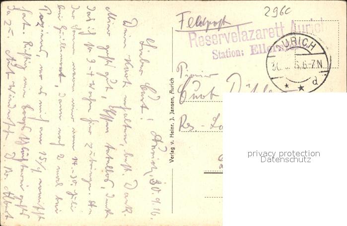 41586676 alte Postkarte Aurich Ostfriesland Strassenpartien Burgtor Marktplatz Gymnasium Lazarett Stempel postalisch gelaufen Feldpost Erhaltung siehe scans KatCode: 11110003452001