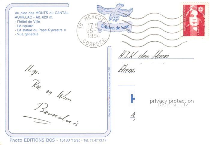 13258401 carte postale Aurillac Hotel de Ville Le square La statue du Pape Sylvestre II Vue generale postalisch gelaufen Erhaltung siehe scans [WerneD78] KatCode: 11170015115014