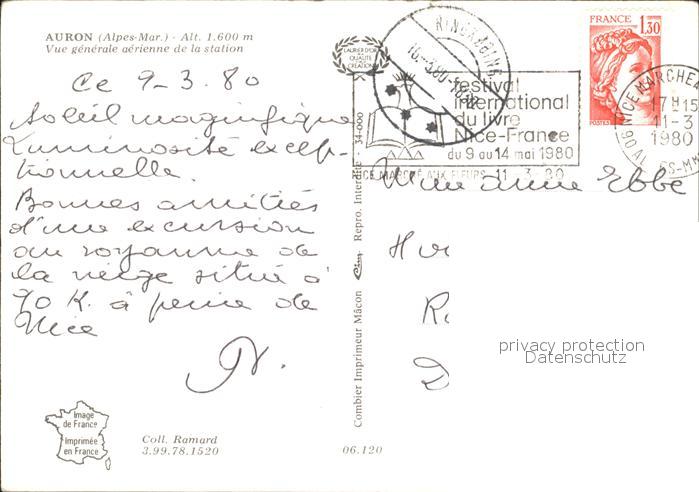 12139493 carte postale Auron Vue generale aerienne de la station postalisch gelaufen Erhaltung siehe scans KatCode: 11170006206120