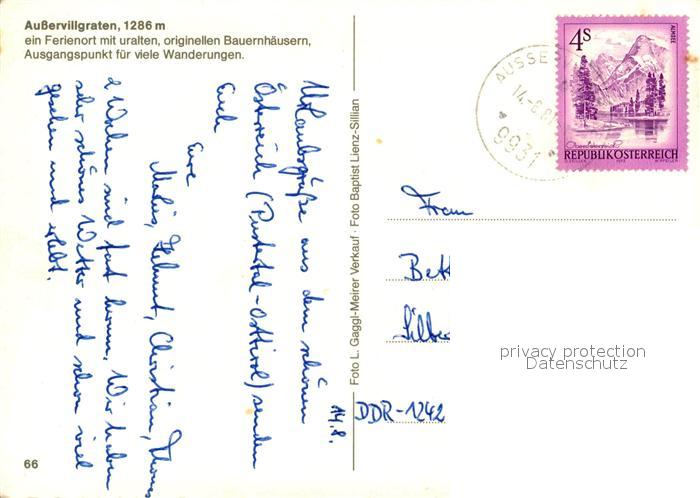 73356090 alte Postkarte Ausservillgraten Motive Ferienort alte Bauernhaeuser Kirche postalisch gelaufen Erhaltung siehe scans [FriedD77] KatCode: 11390333070706