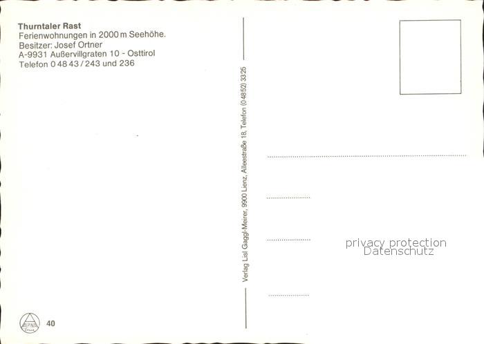 72500166 Ausservillgraten Thurntaler Rast postalisch nicht gelaufen Erhaltung siehe scans KatCode: 11390333070706