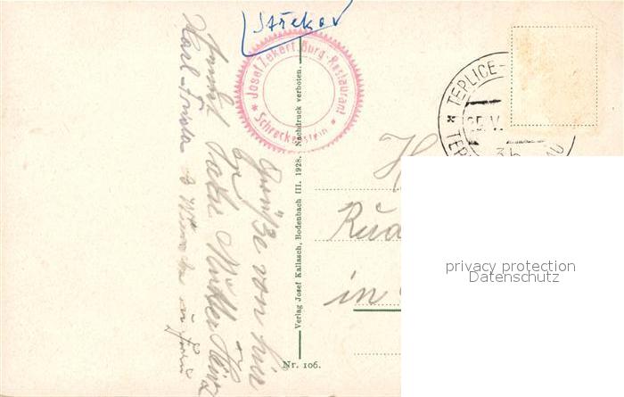 old postcard Aussig Tschechien Burgruine Schreckenstein postalisch gelaufen Erhaltung siehe scans [WerneD78]