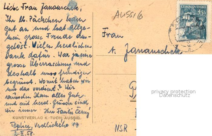 13563121 old postcard Aussig Tschechien Staedtebild Zeichnung postalisch gelaufen Erhaltung siehe scans [WerneD78] KatCode: 11520
