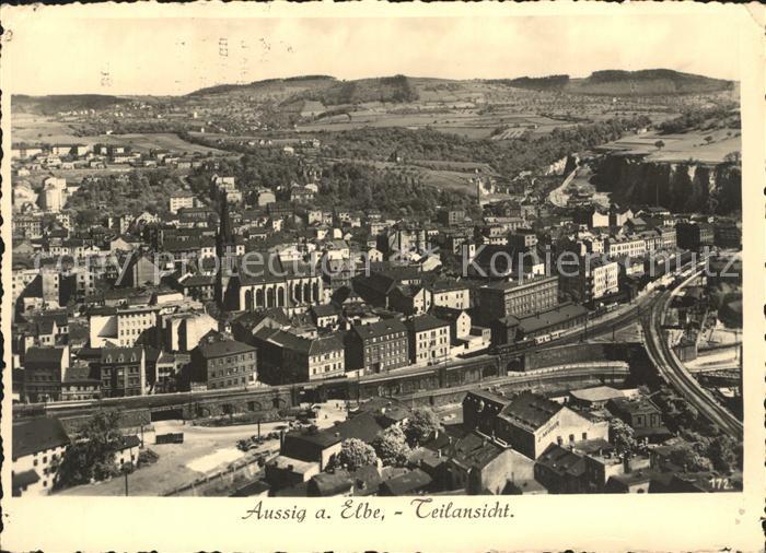 12152783 old postcard Aussig Tschechien Teilansicht postalisch gelaufen Erhaltung siehe scans KatCode: 11520