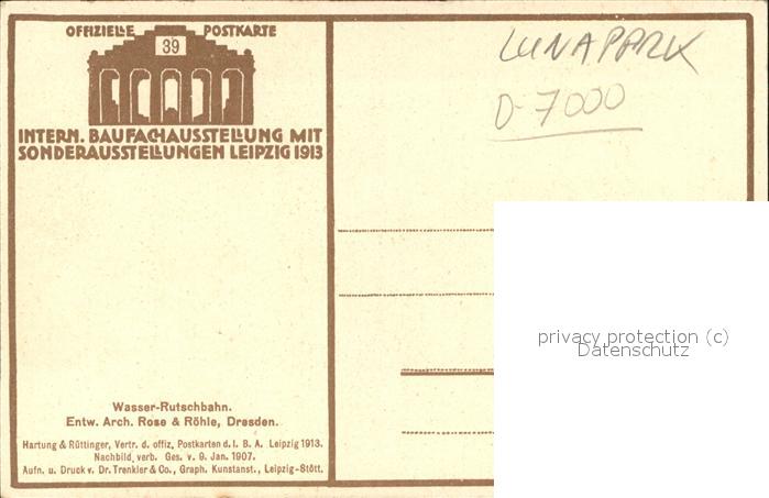 41527917 Ausstellung Baufach Leipzig 1913 Wasser-Rutschbahn Lunapark postalisch nicht gelaufen Erhaltung siehe scans KatCode: 11110014365000