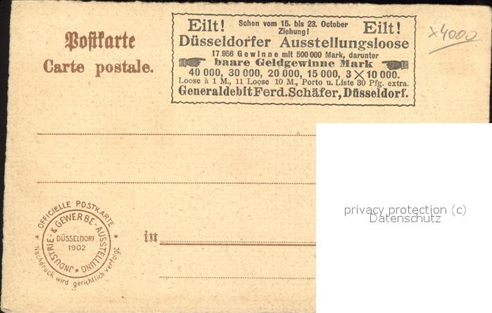 41527735 Ausstellung Industrie Gewerbe Kunst Duesseldorf 1902 Festhalle Ausstellungsloose KatCode 11110005111000