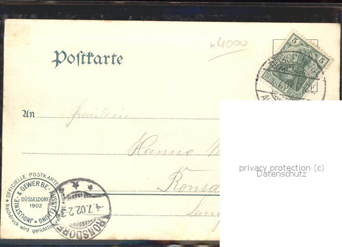41413617 alte Postkarte Ausstellung Industrie Gewerbe Kunst Duesseldorf 1902 Bochumer Verein Rheinische Metallwaren postalisch gelaufen Erhaltung siehe scans KatCode: 11110005111000