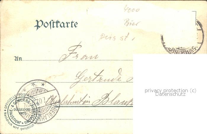 71523113 alte Postkarte Ausstellung Industrie Gewerbe Kunst Duesseldorf 1902 Dortmunder Actien Brauerei postalisch gelaufen Erhaltung siehe scans KatCode: 11110005111000