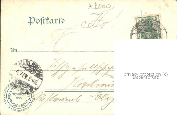 41413587 alte Postkarte Ausstellung Industrie Gewerbe Kunst Duesseldorf 1902 Gutehoffnungshuette postalisch gelaufen Erhaltung siehe scans KatCode: 11110005111000