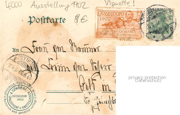 73733146 alte Postkarte Ausstellung Industrie Gewerbe Kunst Duesseldorf 1902 Hauptindustriehalle postalisch gelaufen Erhaltung siehe scans [IrynaD87] KatCode: 11110005111000
