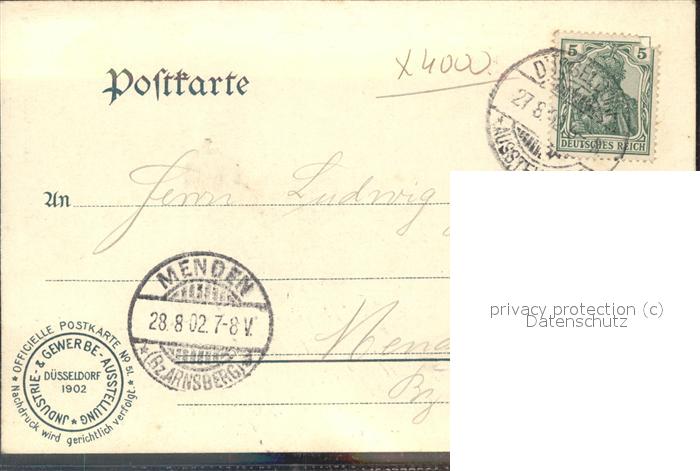 41413646 alte Postkarte Ausstellung Industrie Gewerbe Kunst Duesseldorf 1902 Schmied postalisch gelaufen Erhaltung siehe scans KatCode: 11110005111000