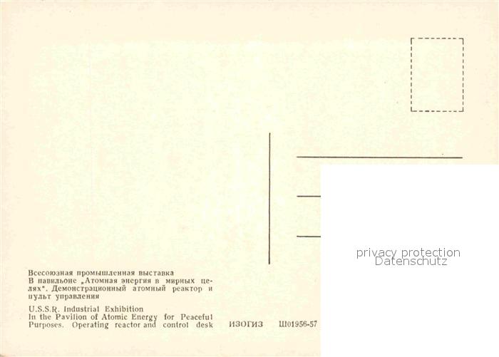Ausstellung UssR Industrial Exhibition Pavillon of Atomic Energy for Peaceful Purposes postalisch nicht gelaufen Erhaltung siehe scans [NatalD47]