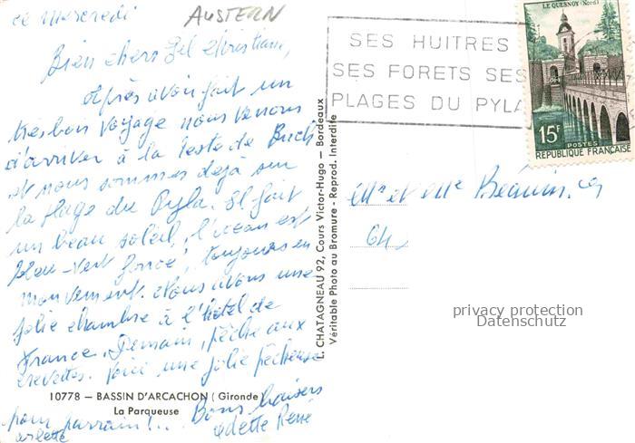 74036366 alte Postkarte Austern Oysters Huitres Ostriche Ostras– Bassin Arcachon Gironde Paqueuse postalisch gelaufen Erhaltung siehe scans [SanaeD93] KatCode: 22280