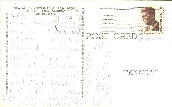 11693291 old postcard Austin Texas University of Texas Campus postalisch gelaufen Erhaltung siehe scans KatCode: 14140460000000