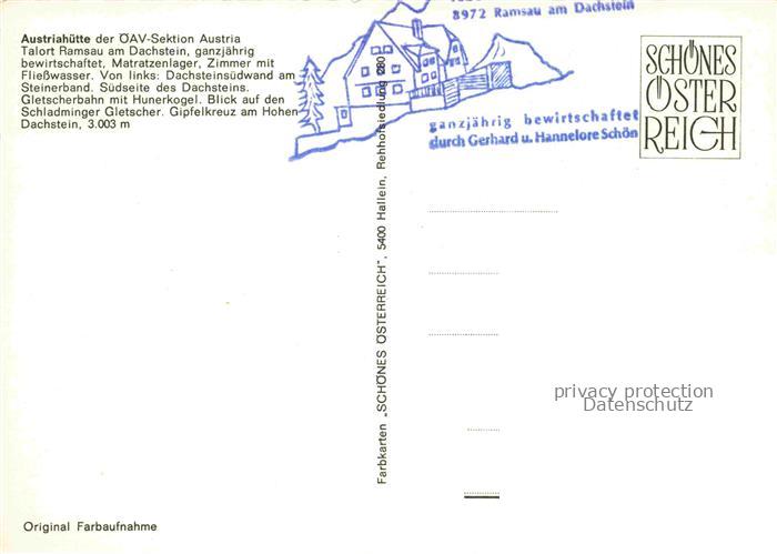 74084791 Austriahuette 1638m Dachstein Steiermark AT Suedseite Gipfelkreuz am Hohen Dachstein Gletscherbahn mit Hunerkogel postalisch nicht gelaufen Erhaltung siehe scans [WerneD78] KatCode: 11390