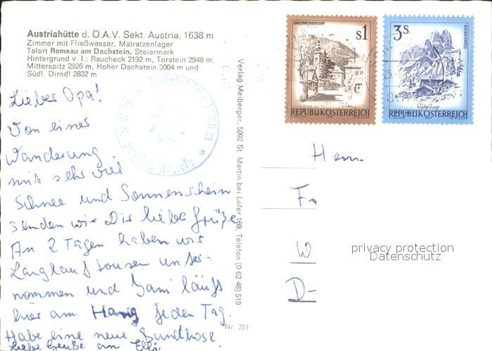 72011658 alte Postkarte Austriahuette Ramsau Dachstein postalisch gelaufen Erhaltung siehe scans KatCode: 11390