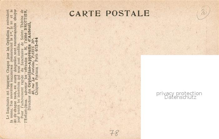 13484458 Auteuil Paris Chapelle de Sainte Therese postalisch nicht gelaufen Erhaltung siehe scans [LiesaD40] KatCode: 11170075175056