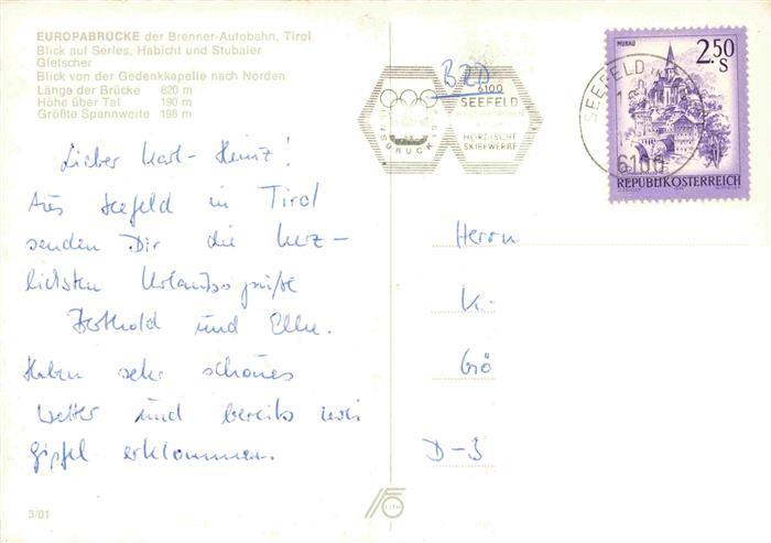 74034457 alte Postkarte Autobahn Autostrada Autoroute Highway Europabruecke Brenner Tirol Gletscher postalisch gelaufen Erhaltung siehe scans [IrynaD87] KatCode: 22020000000300