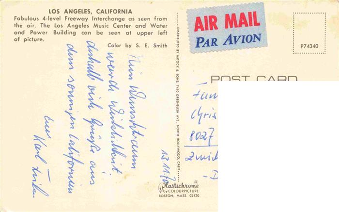 74033663 alte Postkarte Autobahn Autostrada Autoroute Highway Los Angeles California postalisch gelaufen Erhaltung siehe scans [IrynaD87] KatCode: 22020000000300