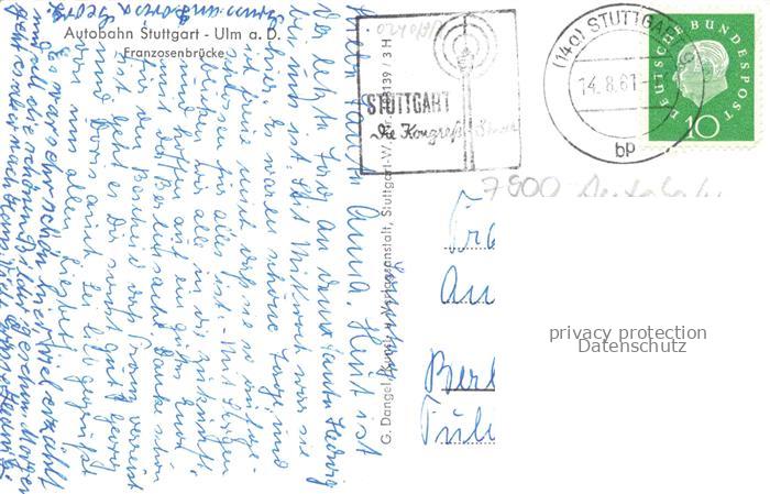 74007661 alte Postkarte Autobahn Autostrada Autoroute Highway Stuttgart Ulm a.D. Franzosenbruecke postalisch gelaufen Erhaltung siehe scans [IrynaD87] KatCode: 22020000000300