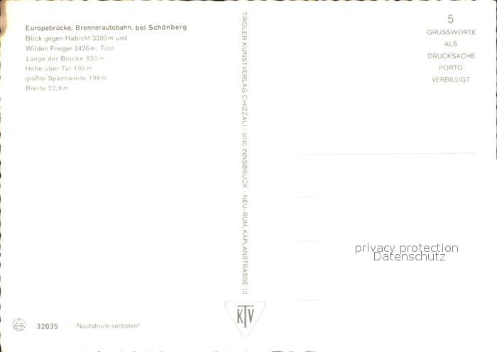 Autobahn Brenner Europabruecke Schoenberg Habicht Wilder Freiger postalisch nicht gelaufen Erhaltung siehe scans