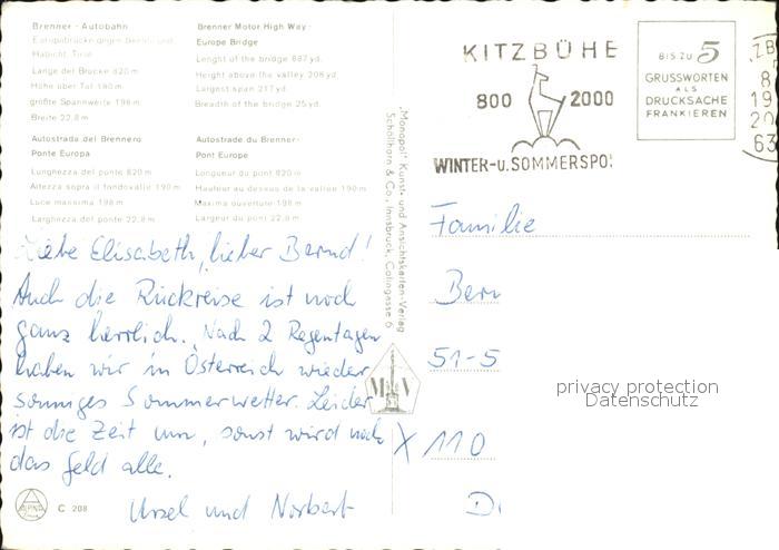 alte Postkarte Autobahn Brenner Europabruecke Serles Habicht postalisch gelaufen Erhaltung siehe scans