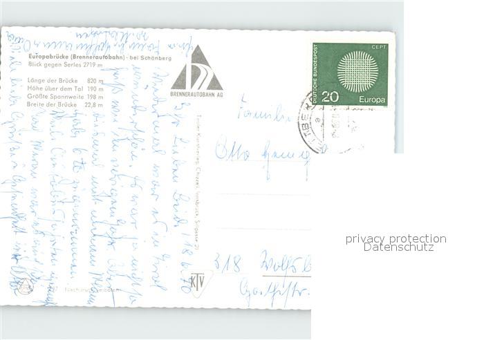 alte Postkarte Autobahn Brennerautobahn Europabruecke Schoenberg Serles postalisch gelaufen Erhaltung siehe scans