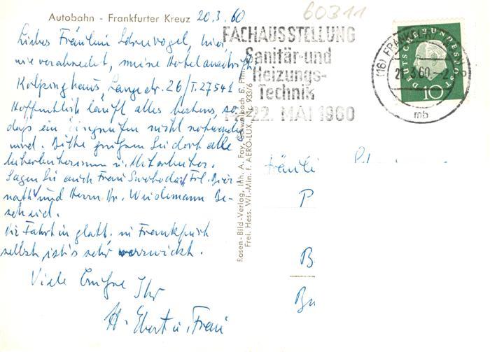 73893648 alte Postkarte Autobahn Frankfurt Kreuz postalisch gelaufen Erhaltung siehe scans [IrynaD87] KatCode: 22020000000300