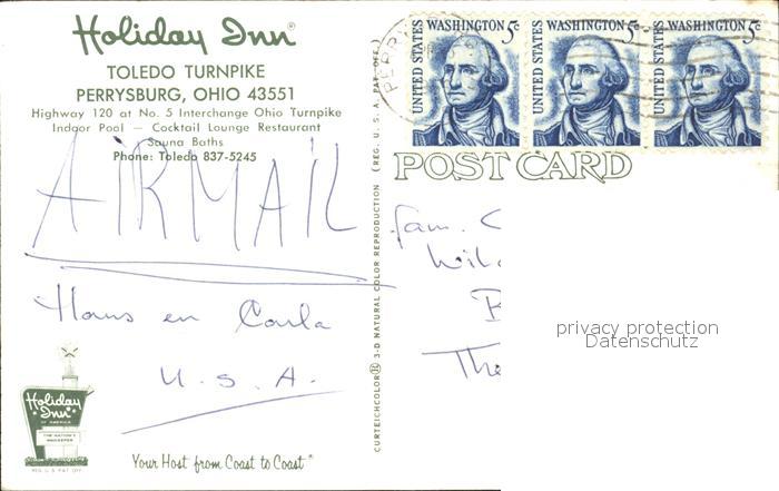alte Postkarte Autobahn Holiday Inn Toledo Turnpike Perrysburg Ohio postalisch gelaufen Erhaltung siehe scans