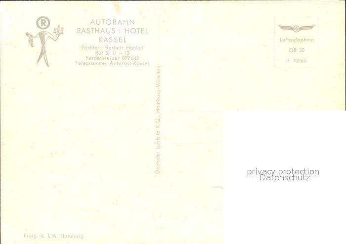 Autobahn Rasthaus-Hotel Kassel Fliegeraufnahme postalisch nicht gelaufen Erhaltung siehe scans