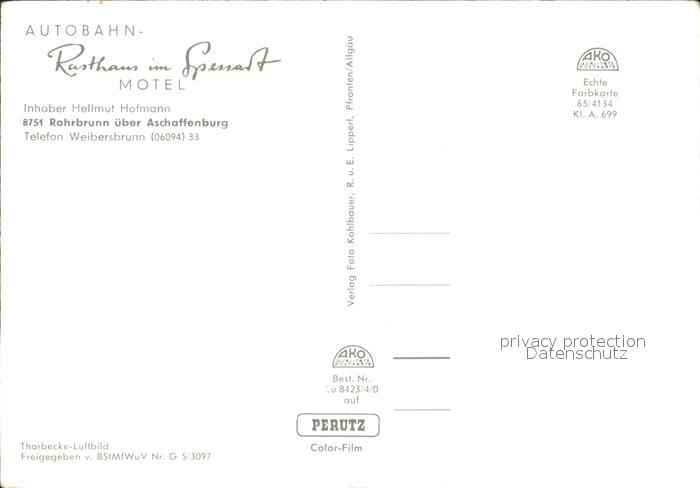 Autobahn Rasthaus im Spessart Motel Rohrbrunn Fliegeraufnahme postalisch nicht gelaufen Erhaltung siehe scans