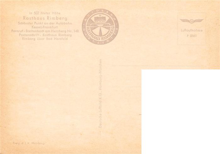 73893294 Autobahn Rasthaus Rimberg postalisch nicht gelaufen Erhaltung siehe scans [IrynaD87] Iryn Katcode 22020000000300