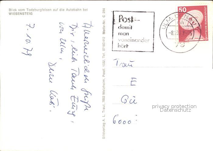 alte Postkarte Autobahn Stuttgart-Ulm Donau Albaufstieg Laemmerbuckel Wiesensteig postalisch gelaufen Erhaltung siehe scans