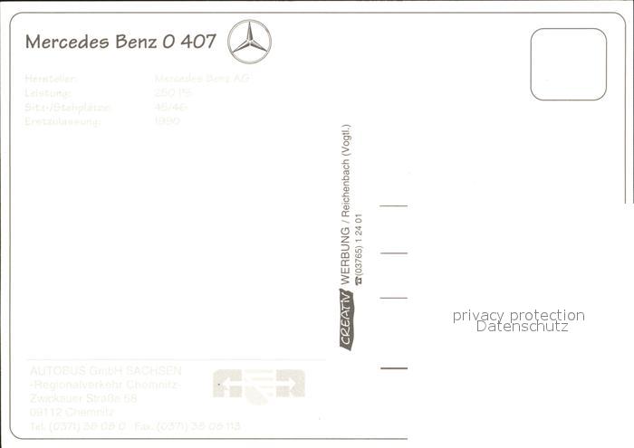 Autobus Omnibus Mercedes Benz 0 407 Regionalverkehr Chemnitz postalisch nicht gelaufen Erhaltung siehe scans