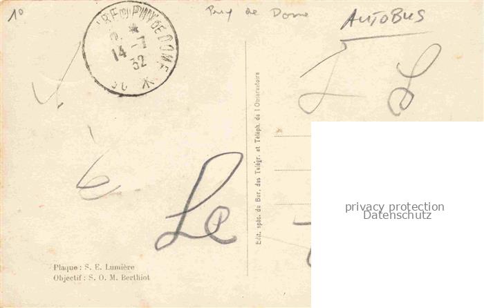74037889 alte Postkarte Autobus Omnibus Puy Dome Fiance montagne postalisch gelaufen Erhaltung siehe scans [IrynaD87] KatCode: 22020000000800