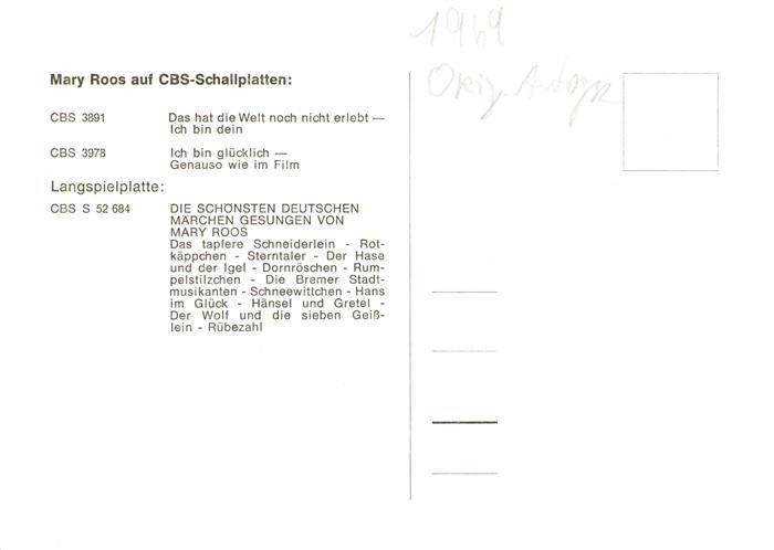 73894701 Autogramm Mary Roos postalisch nicht gelaufen Erhaltung siehe scans [IrynaD87] Iryn Katcode 22400000000900