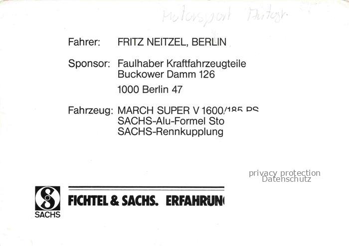 74052111 Autorennen Fritz Neitzel Berlin Autogramm postalisch nicht gelaufen Erhaltung siehe scans [IrynaD87] KatCode: 22020000000100