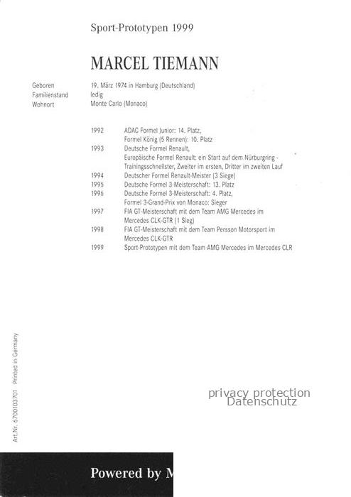 74052108 Autorennen Marcel Tiemann Mercedes Benz Autogramm postalisch nicht gelaufen Erhaltung siehe scans [IrynaD87] KatCode: 22020000000100