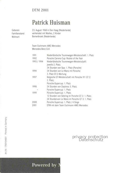 74052109 Autorennen Patrick Huisman Mercedes Benz DTM postalisch nicht gelaufen Erhaltung siehe scans [IrynaD87] KatCode: 22020000000100