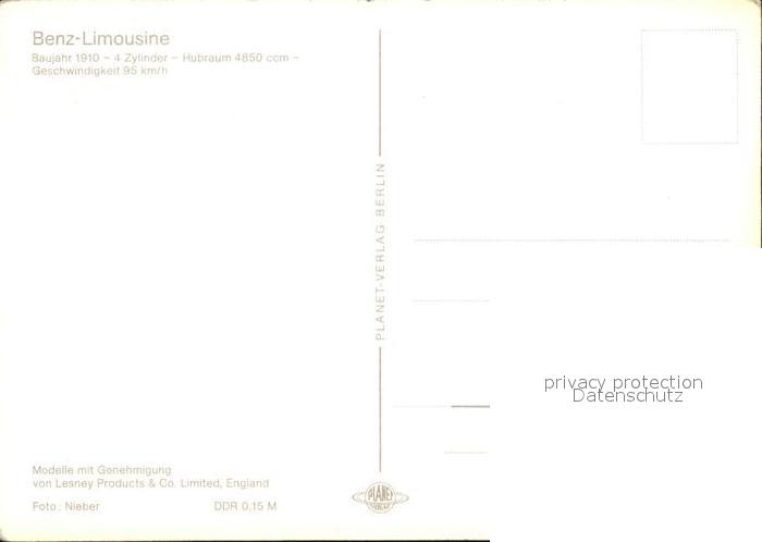 Autos Benz-Limousine Baujahr 1910 postalisch nicht gelaufen Erhaltung siehe scans