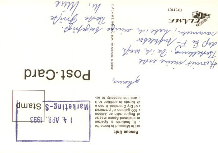 73939151 alte Postkarte Autos Cars Voitures Fire-X Crash Fire Rescue Unit postalisch gelaufen Erhaltung siehe scans [IrynaD87] KatCode: 22020000000300