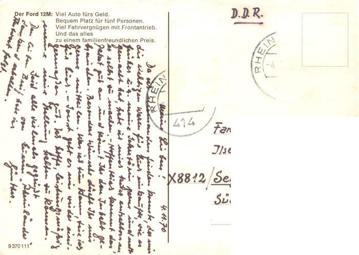 73928106 alte Postkarte Autos Cars Voitures Ford 12M postalisch gelaufen Erhaltung siehe scans [IrynaD87] KatCode: 22020000000300