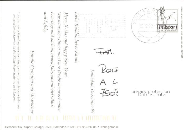 alte Postkarte Autos Geronimi 2000 Airport Garage Samedan postalisch gelaufen Erhaltung siehe scans