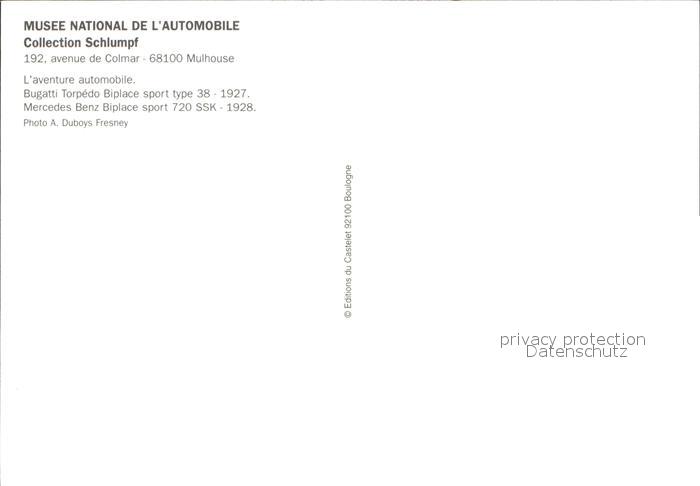 Autos Musee National de l’Automobile Mulhouse Bugatti Torpedo Biplace postalisch nicht gelaufen Erhaltung siehe scans